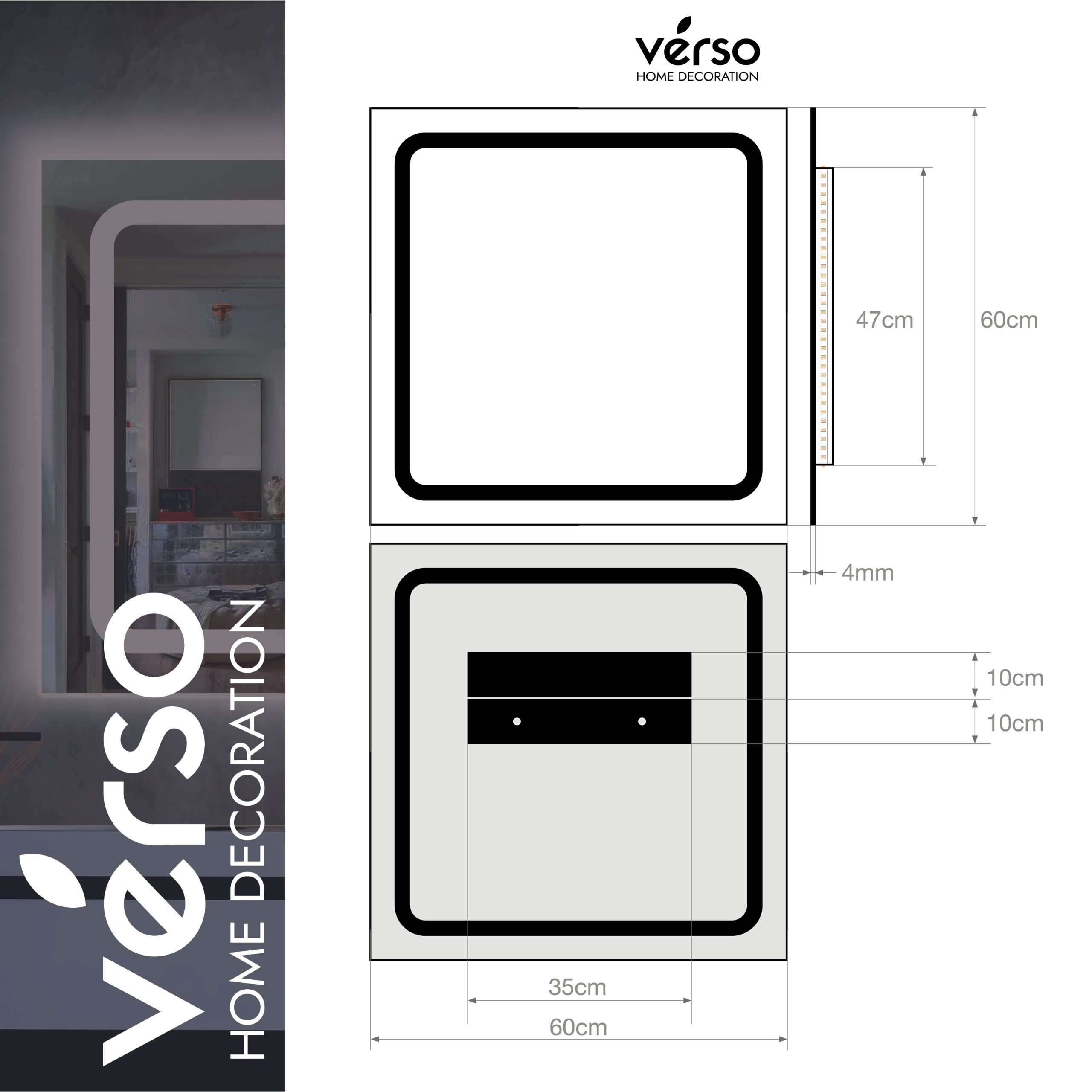 Bu şık ve modern **Verso Home 60x60cm LED’li Kare Dokunmatik Beyaz Dekoratif Ayna**, yaşam alanınıza zarif bir dokunuş katmak için tasarlanmıştır. Kare şekli ile hem fonksiyonel hem de estetik açıdan mükemmel bir seçimdir. Aynanın etrafındaki entegre yüksek kaliteli **LED aydınlatma**, gün ışığı tonlarında sıcak bir ışık yayarak mekânınıza doğal ve ferahlatıcı bir atmosfer kazandırır.