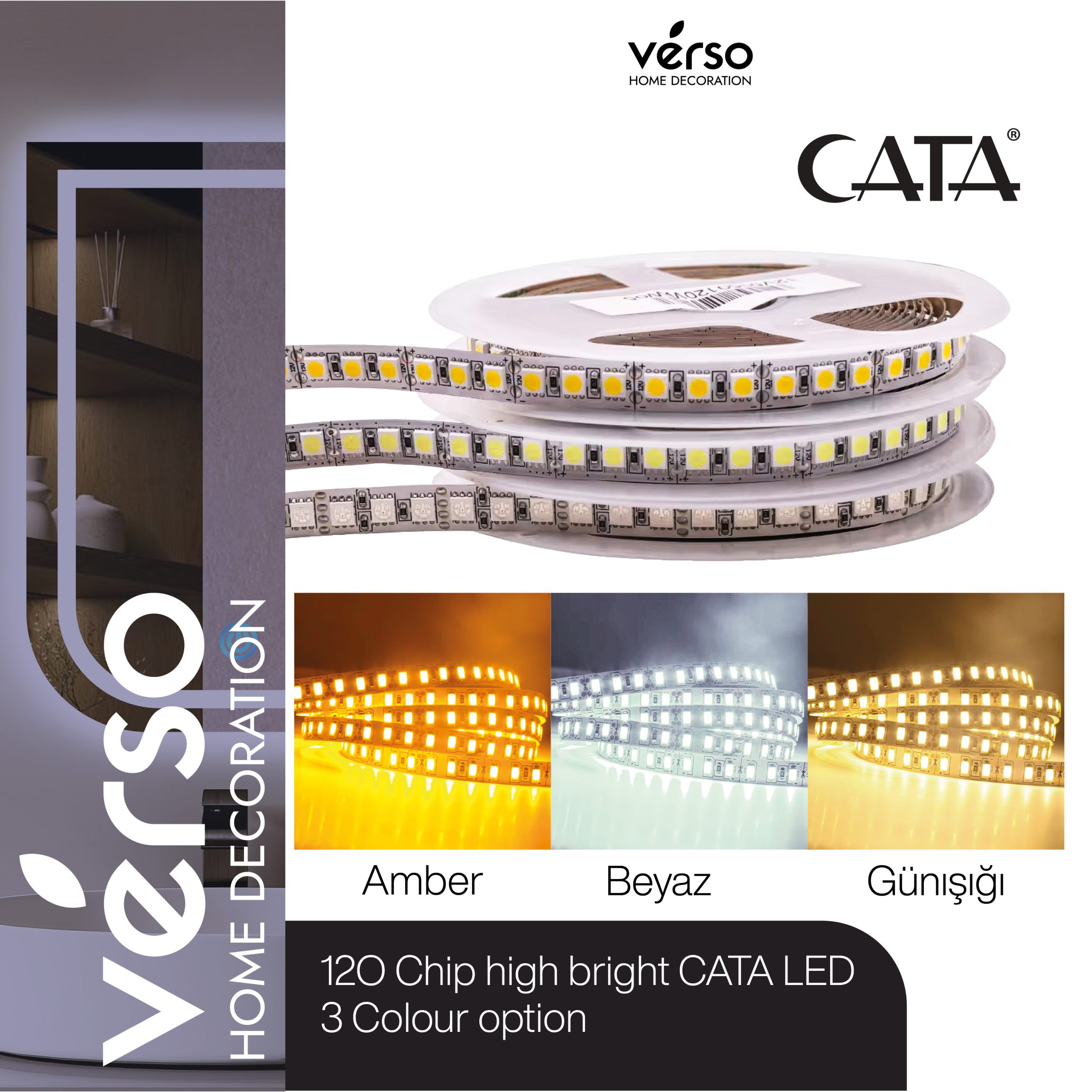 – **Cata marka 120 çipli yüksek lümenli şerit LED**